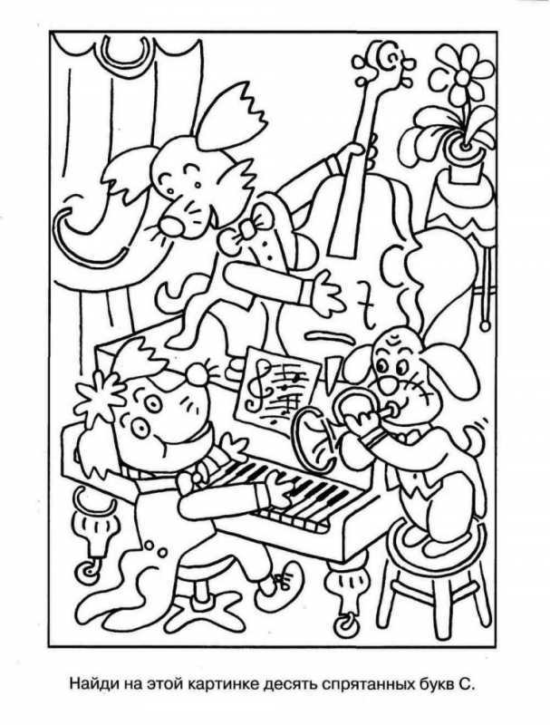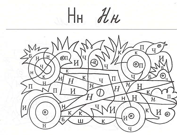 Данный вид раскрасок представляет собой изображения, на которых спрятаны буквы. Задачей ребенка является найти эти буквы и раскрасить их определенным цветом. Таким образом, помимо развития художественных навыков, ребенок учится внимательности и концентрации.