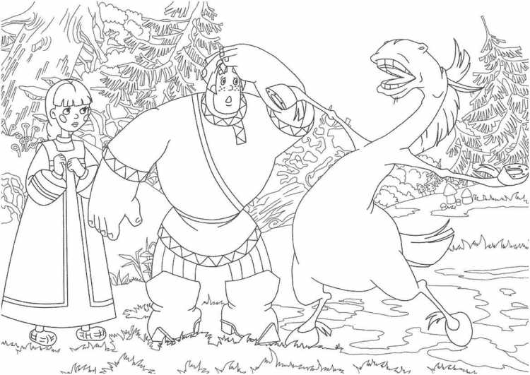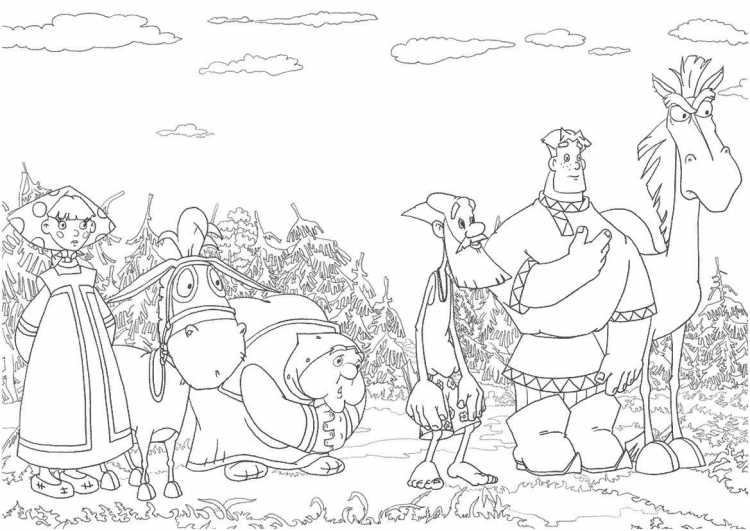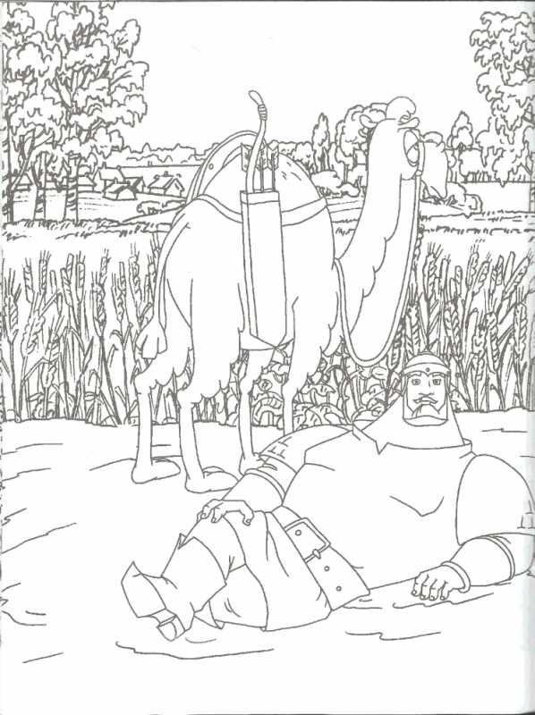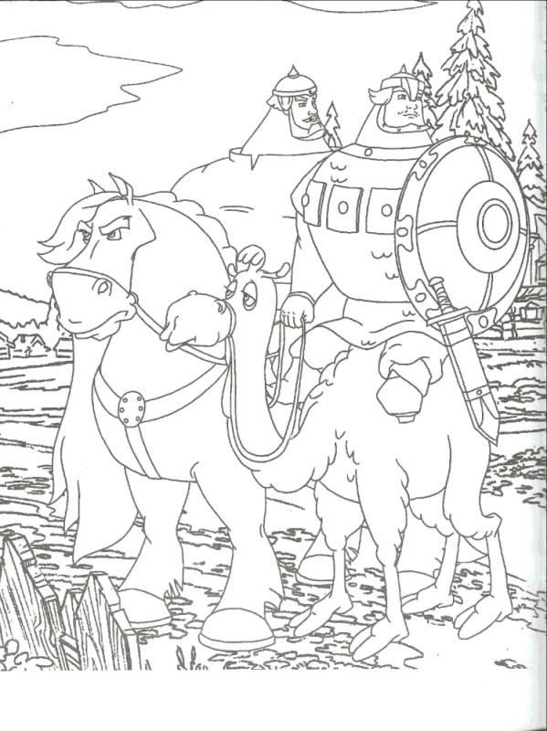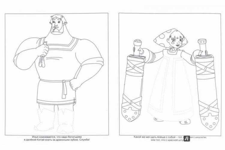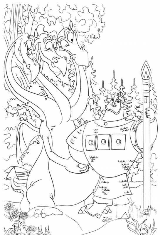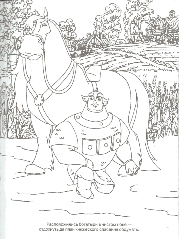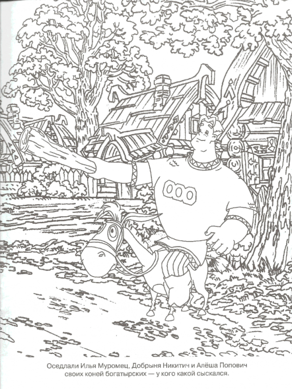 Дайте волю своему воображению и помогите детям окунуться в мир трёх богатырей, заполнив яркими цветами эту чудесную раскраску!