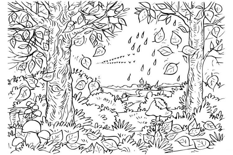 Золотая пора для творчества: раскраска «Осень» для маленьких художников