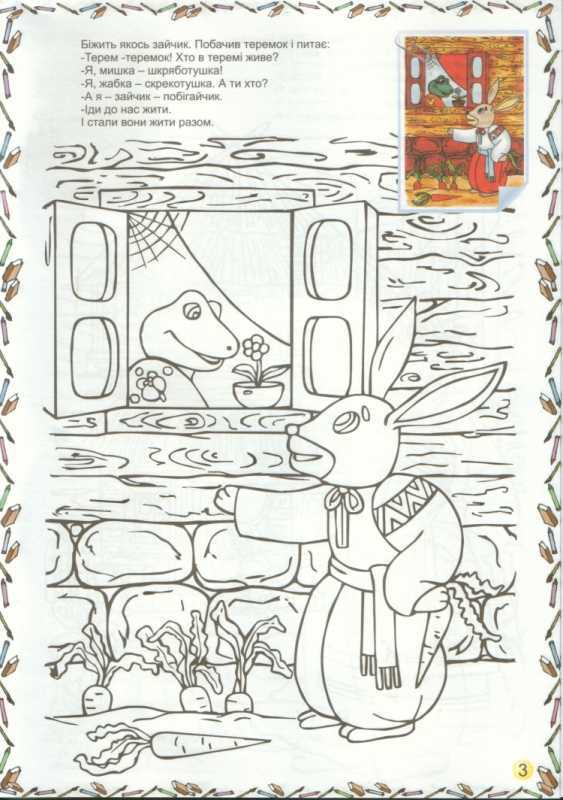Раскраска имеет удобный формат, не слишком большой размер, но и не маленький, что позволяет детям комфортно держать ее в руках и не уставать во время увлекательного процесса. А яркие и красочные картинки помогут не сбиваться с очертаний изображений и развивать пространственную координацию. Сказка «Теремок» в формате раскраски — это не только весело, но и полезно!