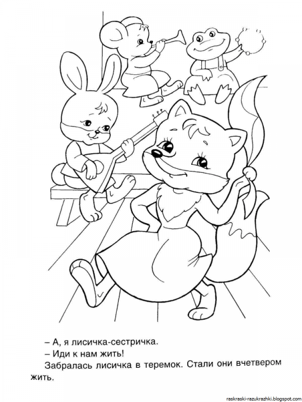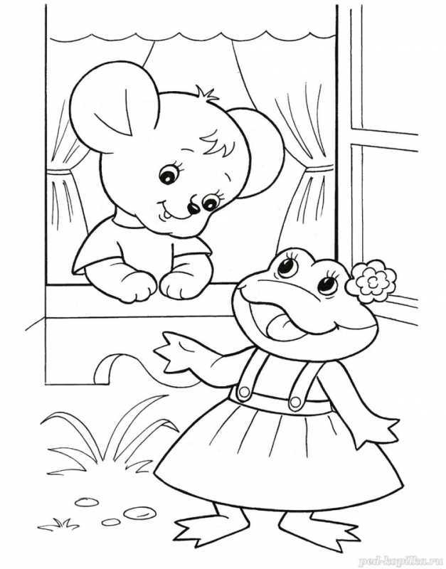 На страницах раскраски дети увидят изображения главных героев сказки: лягушку, кота, заяца, волка и, конечно же, теремок — тот самый домик на курьих ножках, который так легко можно представить себе, благодаря живым описаниям в сказке. Раскрашивая этих героев, дети не только проведут время с удовольствием, но и научатся различать цвета, развивая воображение и пространственное мышление.