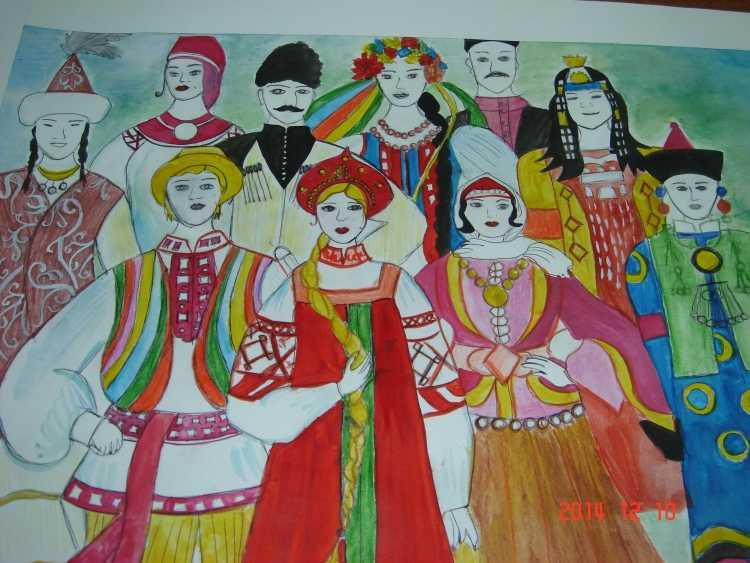 Кроме того, рисунок может отражать более абстрактные концепции, связанные с единством и сплочённостью народа. Например, на нём могут быть изображены люди, держащиеся за руки, образующие круг или цепь, символизируя единство и силу в разнообразии. Такие образы передают идею того, что, несмотря на различия, народ России един и сплочён.
