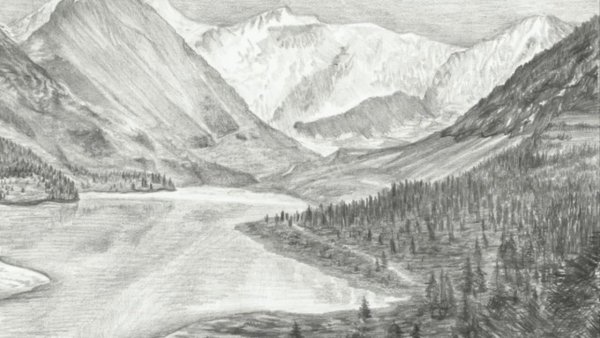 Погрузитесь в волшебный мир гор, созданный карандашом. Каждая линия и тень переносит вас в живописную природу. Снеговые вершины, зелёные долины и облака — всё это стало реальностью. Не бойтесь экспериментировать с контрастом и текстурой. Попробуйте начать с общего силуэта, а затем добавить детали постепенно.