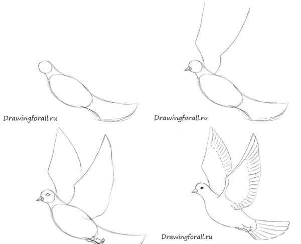 Детский рисунок голубя карандашом