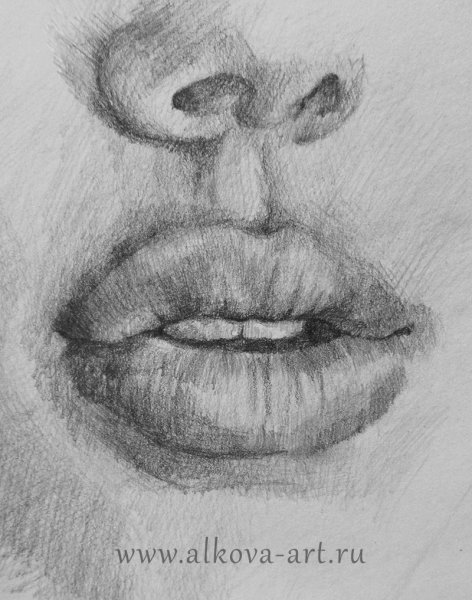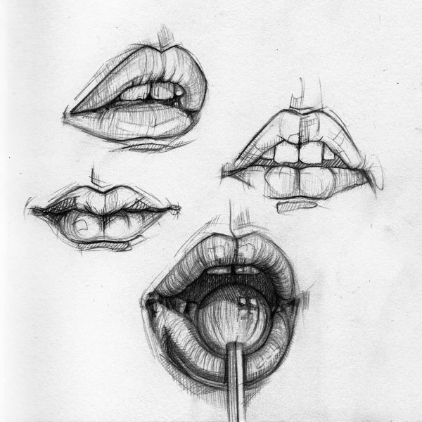 Рисунок губы карандашом для срисовки