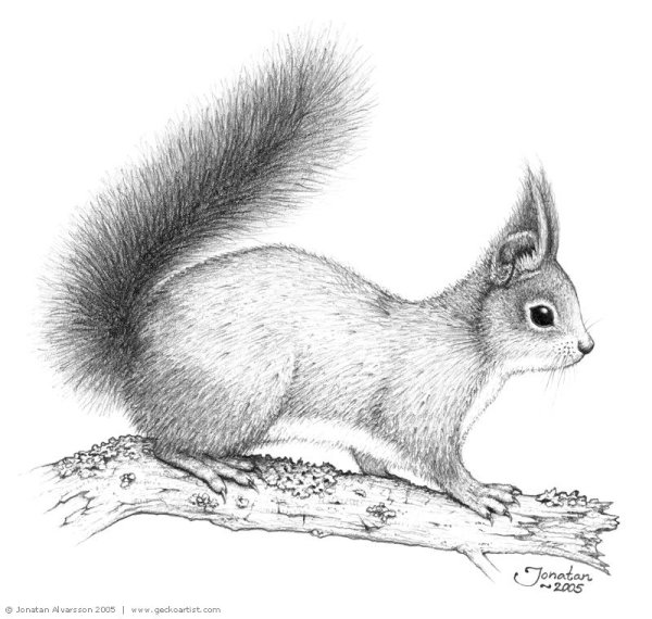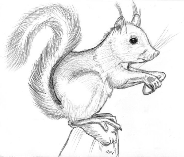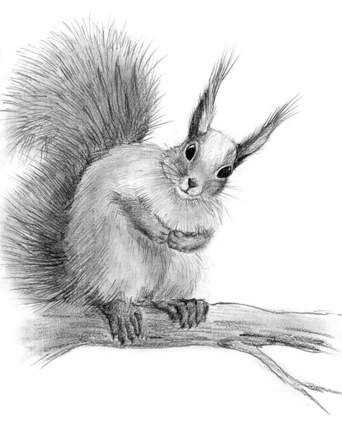 Рисунок белка карандашом для срисовки