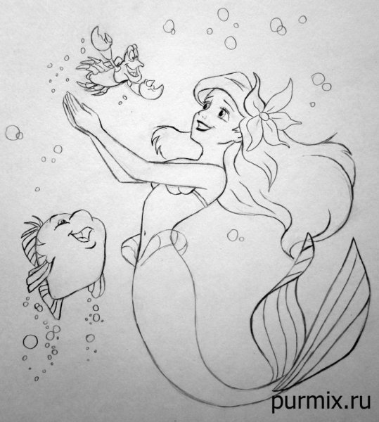 Рисунок Ариэль карандашом для срисовки
