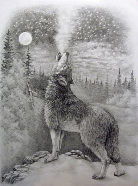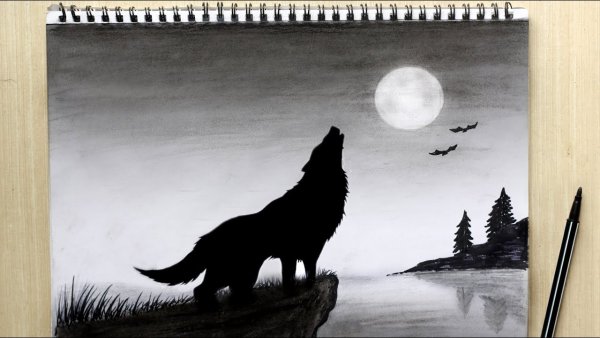 Этот рисунок волка, воющего на луну, вызывает восхищение своими нежными линиями и яркими тенями. Каждая деталь передаёт магию природы и глубокую связь с диким миром. Волк кажется живым, будто погружённым в волшебную атмосферу ночи. Используйте мягкие штрихи, чтобы передать тени, и добавьте акценты на глазах, чтобы подчеркнуть эмоции.