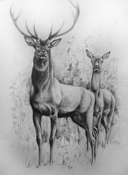 Олень рисунок карандашом для срисовки