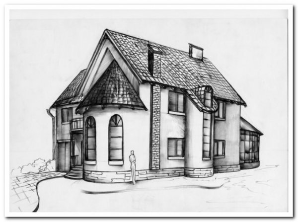 Рисунок коттеджа карандашом для срисовки