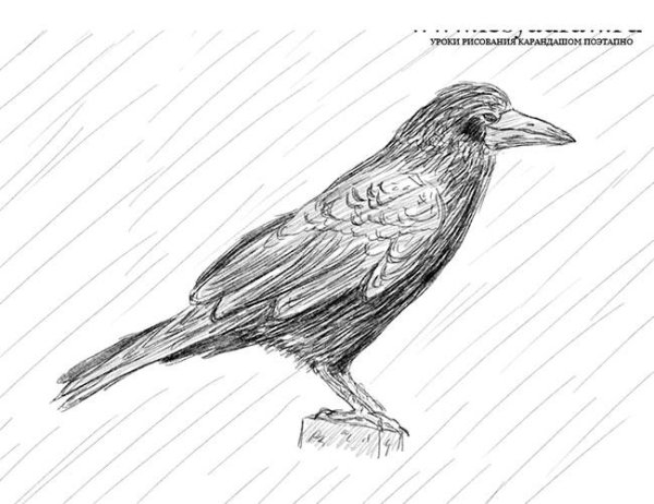 Грач рисунок карандашом для срисовки
