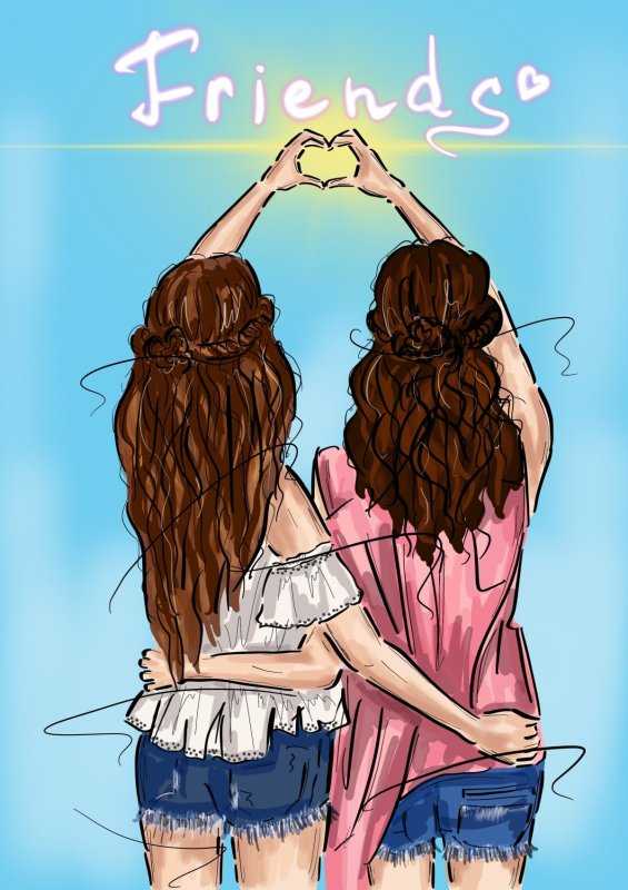 Две подруги рисунок можно изобразить по-разному: одна может держать карандаш, а другая — краски, или же они могут сидеть вместе за одним листом бумаги. Можно нарисовать их в парке, в школе, дома или в студии. Одна девочка может смеяться, а другая — сосредоточенно рисовать. Одна может быть с короткими волосами, другая — с длинными. Или одна одета в платье, а другая — в джинсы. Важно передать их дружбу и взаимодействие.
