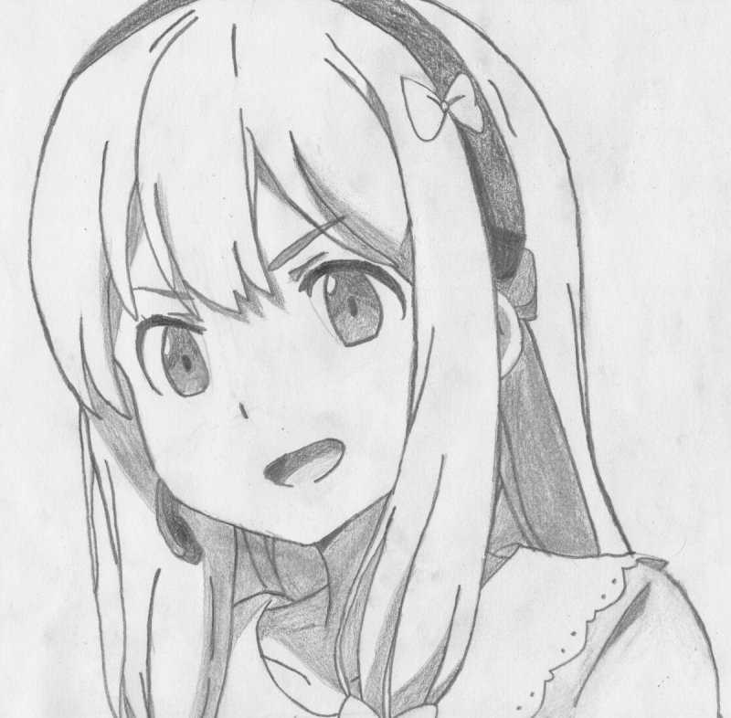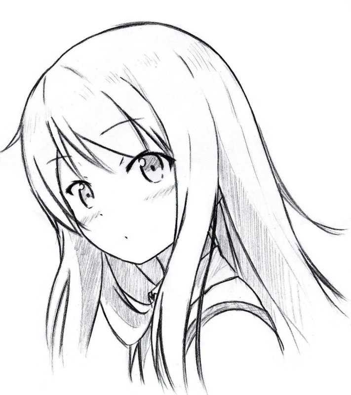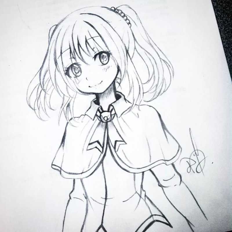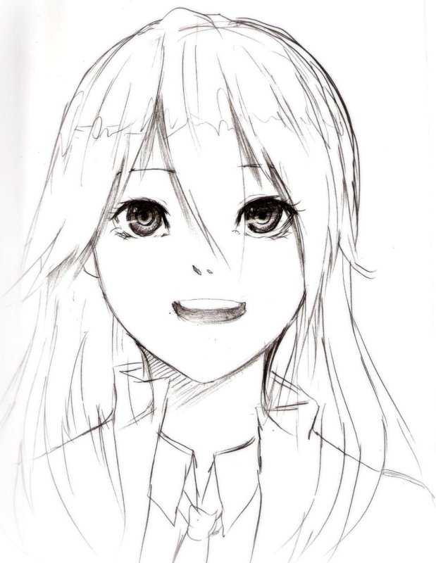 Создайте графическое изображение персонажа аниме-жанра женского пола, выполненное с использованием карандаша, для последующей практики техники срисовки.