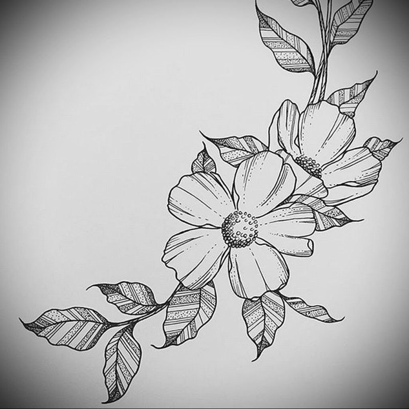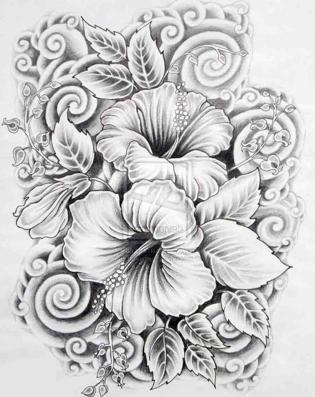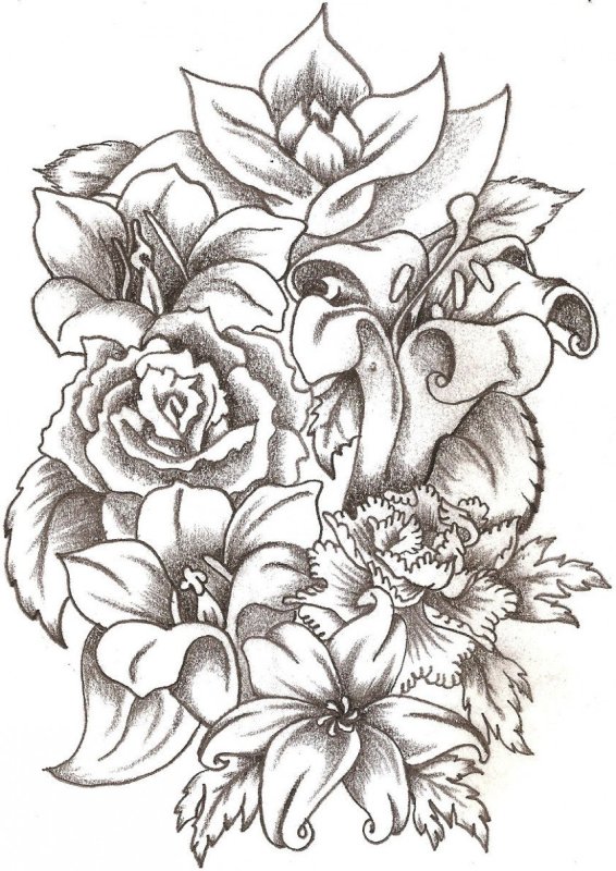 На рисунке изображён эскиз цветов, выполненных в ярких и насыщенных тонах. Плавные линии лепестков создают ощущение нежности и изящества. Цветы расположены на фоне, который гармонично дополняет их, подчёркивая красоту и выразительность. Этот рисунок может стать вдохновением для создания живописного произведения или декоративного элемента.