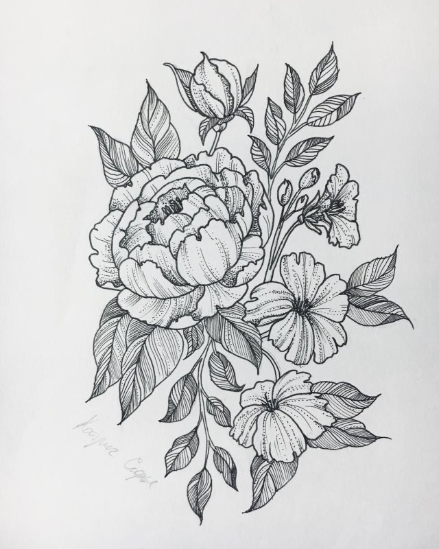 Пионы могут быть разных оттенков, от нежно-розовых до ярко-красных. Используйте карандаши, уголь, пастель или маркеры для создания насыщенных и ярких цветов.